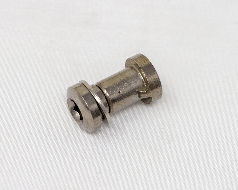 Seat collar binder nut and bolt, notched type, 19mm from inside surface on nut to inside surface on bolt when fully tightened, M6 threading