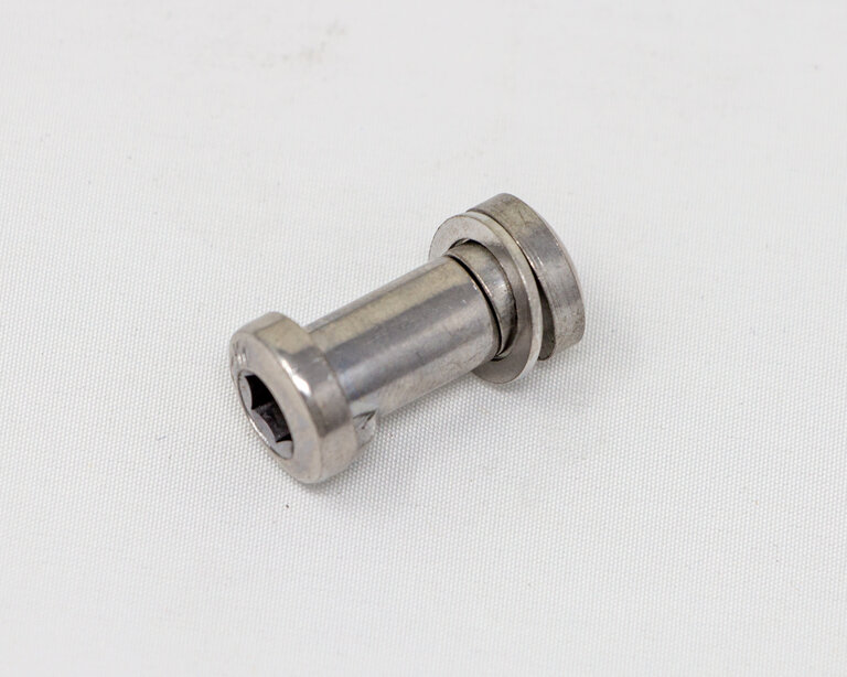 Seat collar binder nut and bolt, notched type, 16mm from inside surface on nut to inside surface on bolt when fully tightened, M6 threading