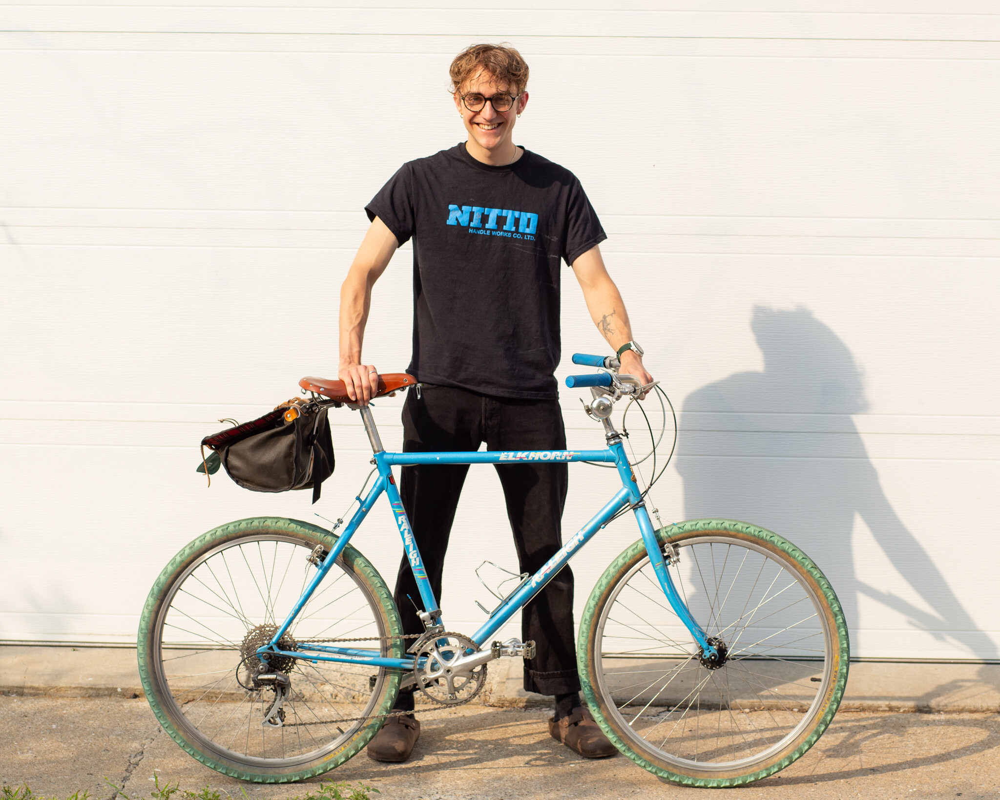 Rachel floor manager and C&L newslettermeister Cory shows off his janky but charming Raleigh!