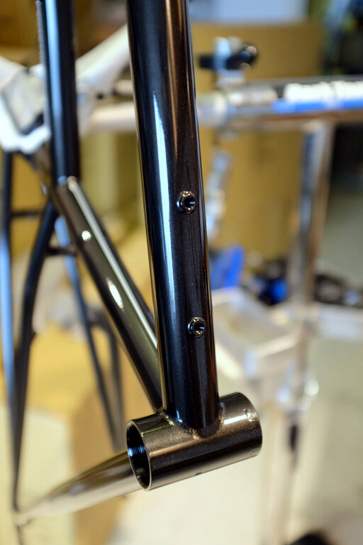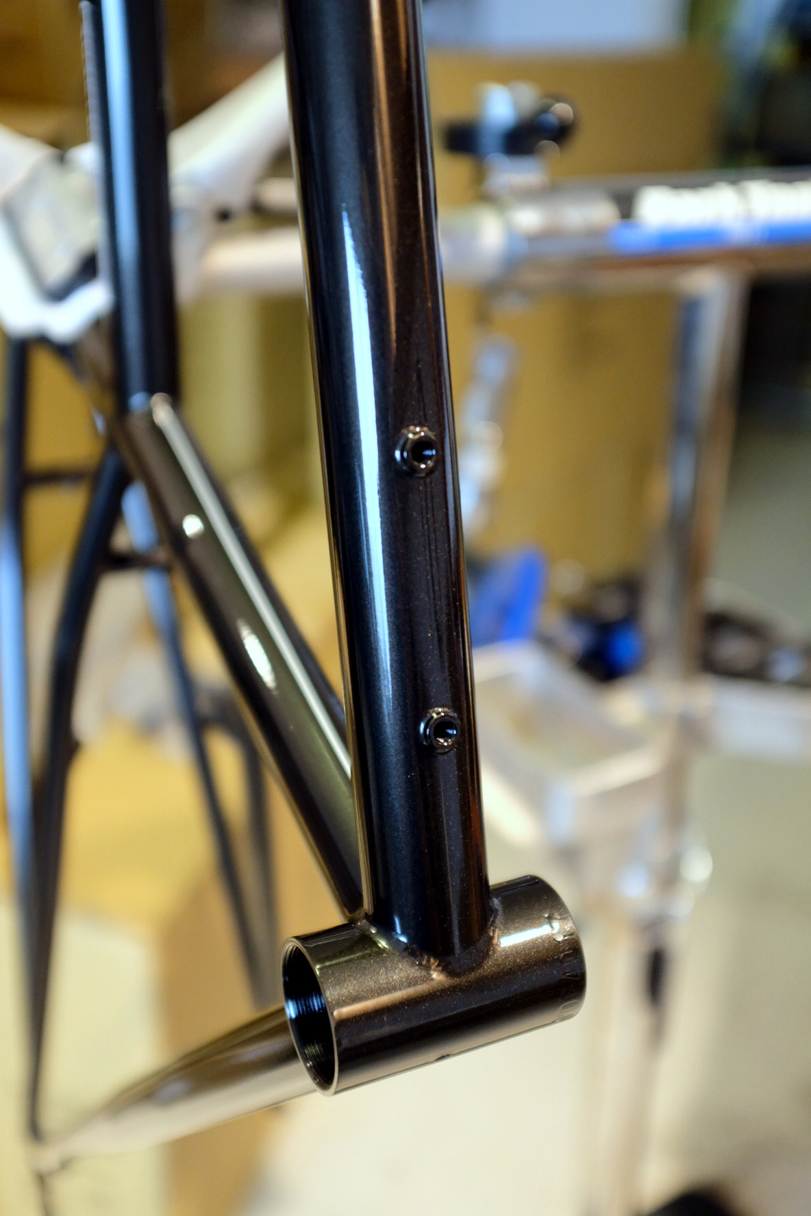 Although Bassi frames, as well as many others, go through many quality control steps and come almost immaculate from the factory, some imperfections may still arise. Usually, paint is the culprit by being applied slightly unevenly or being oversprayed and covering some threads. The result, in the case of a headset or a bottom bracket, is uneven surfaces or imperfect planes which can cause binding and/or premature wear of the bearings. Bottom bracket and headset bearings work at their very best when they're perfectly in line and parallel to each other! In the case of overspray on the threads, it can make fender or rack installations more of a headache than they need to be. With the help of C&L's very fancy facing, chasing, reaming and tapping tools, installing parts on your new fully prep'd frame will be a breeze!