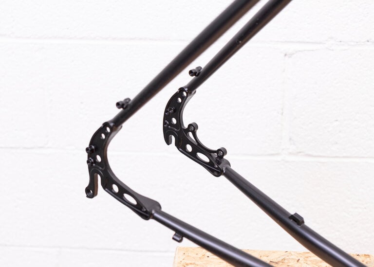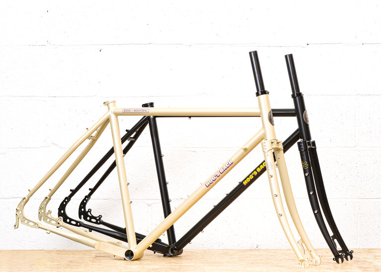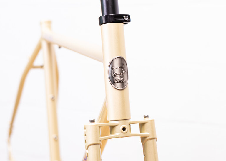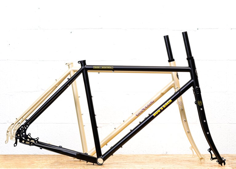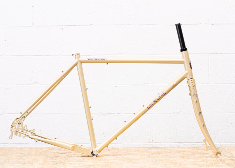 • We weighed a 51cm frame with its fork steerer uncut, with no parts on, at 3.8kg. We don't really worry about frame weights, but some people like to know that kind of thing, so a year into this frame's existence we finally put one on the scale. Turns out it weighs pretty much what you'd expect for a touring frame. A Montréal frame is about 600g lighter FYI, which is the same as a mostly-full water bottle.