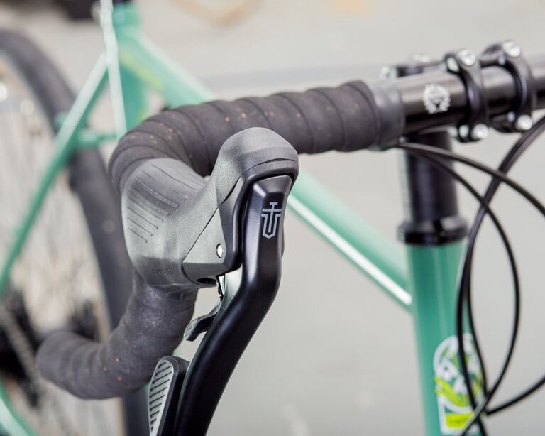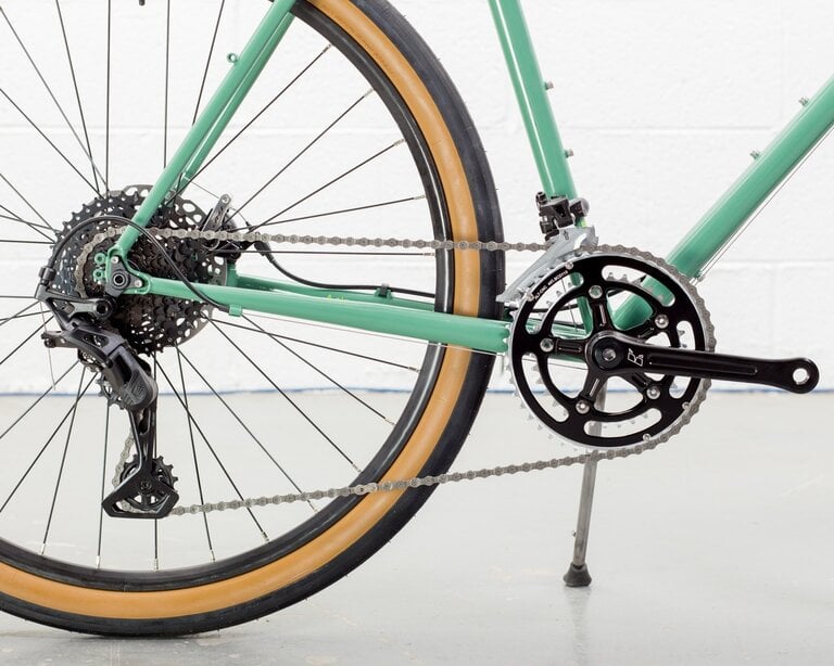 This complete bicycle features Microshift's new and fantastic Sword groupset in 2x9, with our popular Bassi Classic Compact Double cranks, and Velo Orange were kind enough to provide us with plenty of their Nouveau Rando handlebars, for all-day comfort on drop-bars.