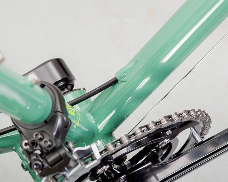 The result of our serendipitous joining of ideas and experiences is a versatile, capable and comfortable frame that'll be the perfect companion for many things involving paved and unpaved road, gravel, carrying much or little stuff, and so on. The sturdy construction, versatile design, time-tested standards and the tough E.D.-coating and finish make for a frame that, with a little care and attention, will treat you well for many, many years. It's the kind of frame that can take on lots of different configurations and evolve as your needs do, too. Those unused to drop bars will find this bike surprisingly comfortable with them, since they're fairly close and higher up than on a racing bike.
