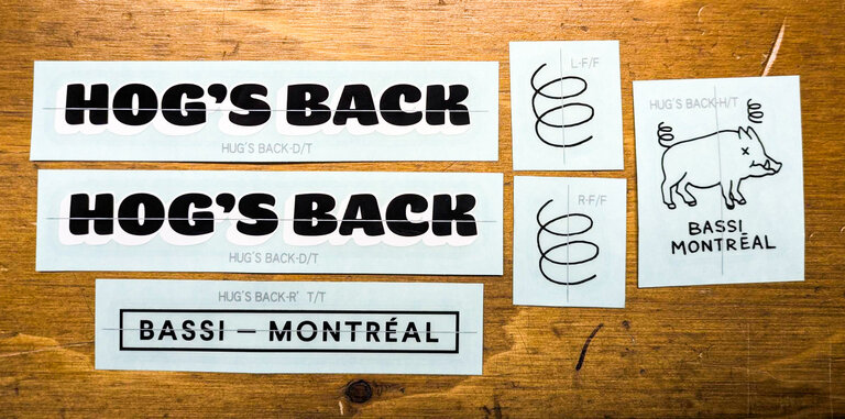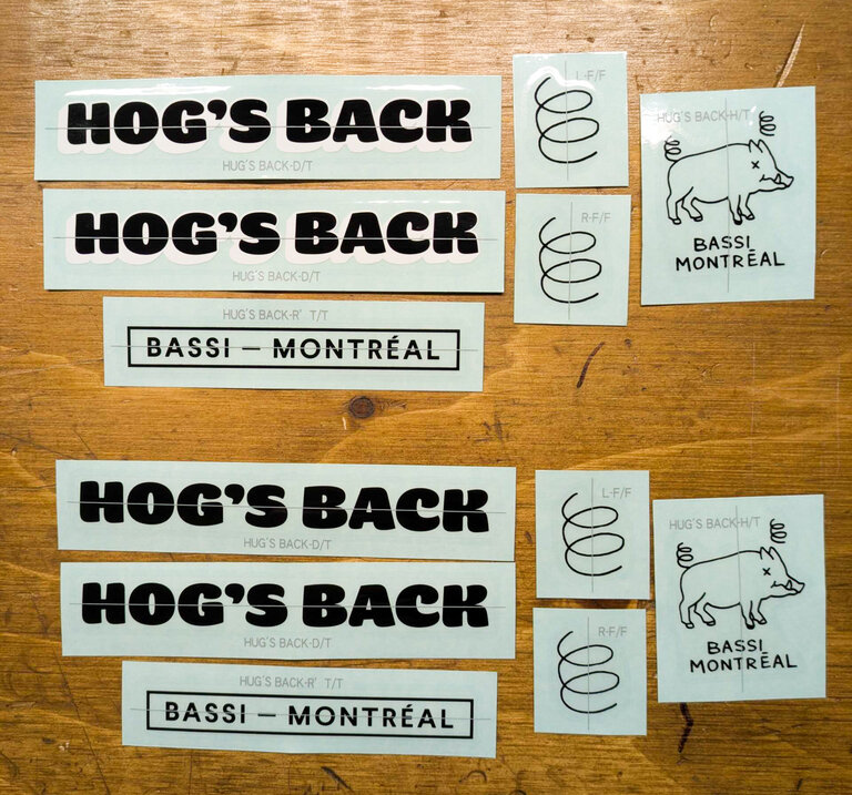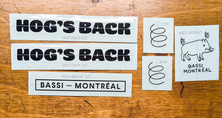 The Black and Black/White Hog's Back versions are an easier-to-apply transfer specifically designed for repainted bikes, and do not precisely replicate any previously-used colourway. They also include a head-tube decal.