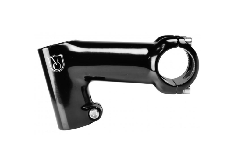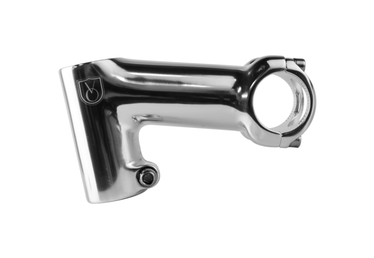 The VO Tall-Stack Stem offers a super clean look on a modern bike. The angle is 17 degrees, so the stem is level on most frames. Available in polished Silver and Noir. The stem is cold forged alloy with a polished finish.