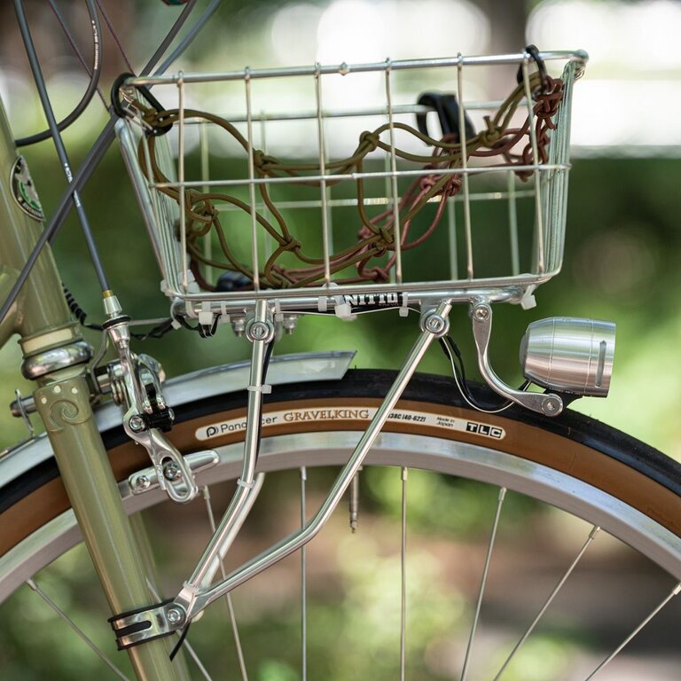 Designed by Blue Lug to be mounted to a front rack with eyelets on either side like the Soma Champs-Élysée, Tumbleweed T-Rack or Mini Pannier Rack, etc.