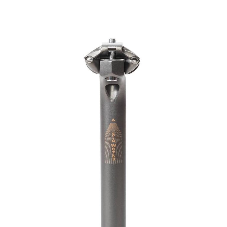 The new SimWorks by Nitto seatpost was named "Froggy" because of its frog-like appearance when viewed from the side. It is a classic Nitto profile. Available here in their new Stealth finish- offering 2 saddle offsets and post lengths.