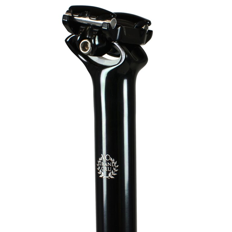 The VO seatpost is internally ovalized to reduce weight to 301g. The adjustment is from the bottom, and the two-bolt design makes it easy to precisely adjust the seat angle. Also note that the head is integral with the post, not pressed on as on many modern posts. This makes them stronger and lighter.