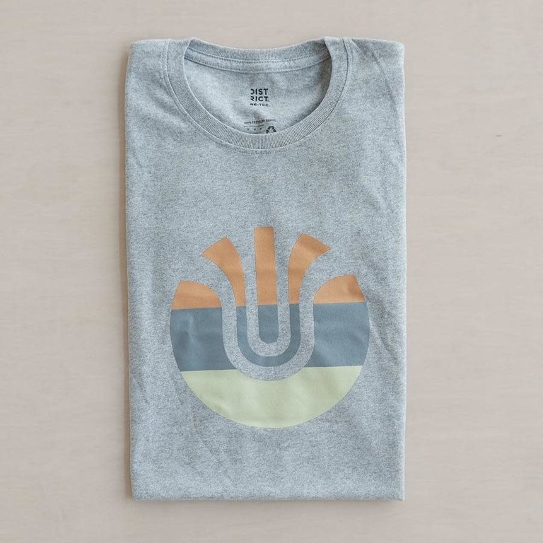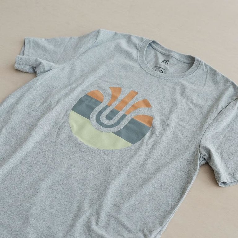 It's a grey, soft, recycled cotton / poly T shirt with Ultradynamico's logomark on the front.