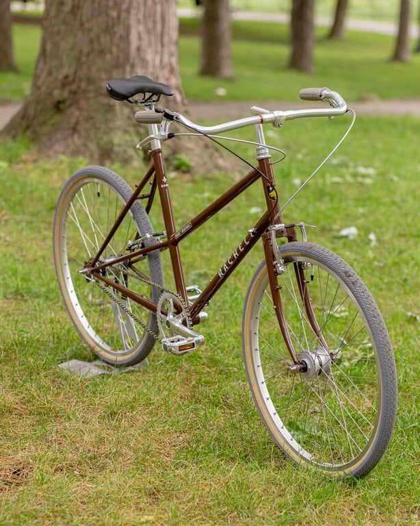 Create an accountOur Rachel store team built a one-off Rachel based on Julian's 3-speed, around a 1976 Sturmey-Archer AW hub. With fancy bits here and there, a dynamo-lighting-ready front wheel, and a comfy fit, this will make an excellent city bike!