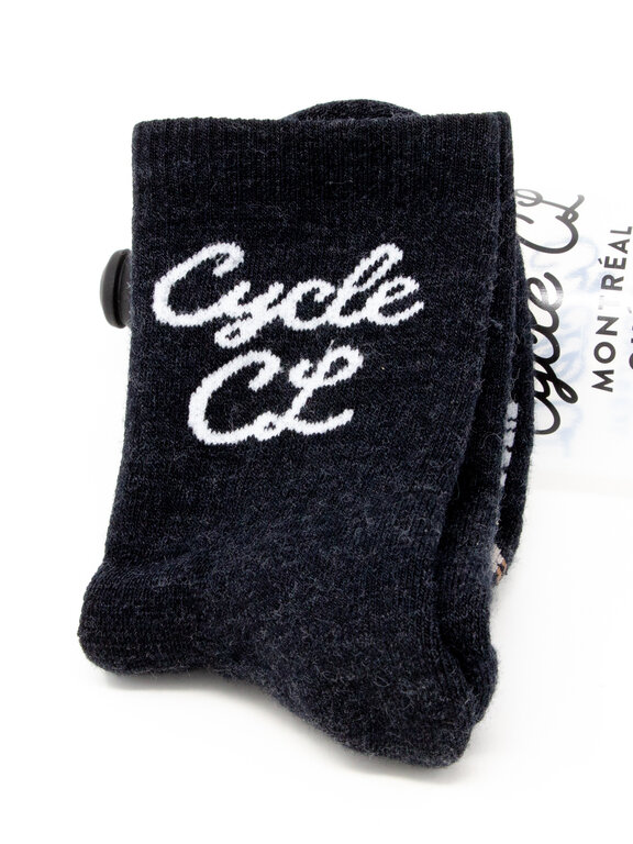 Les cyclistes et chaussetistes chez Defeet nous ont fait ces bas juste pour C&L. On a choisi leur bas Woolie Boolie, plus épais que le bas sportif moyen, coussiné et avec manchette de 4po. Ils seront confortables toute la journée en vélo sauf les jours les plus chauds, et la laine Mérinos garde très peu les odeurs!