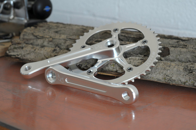 Notre fameux pédalier de piste s’est refait une beauté! Nous avons jumeler le design élégant de notre pédalier à un seul plateau « narrow-wide » aux spécifications d’un pédalier de piste. Le résultat est durable et intemporel.