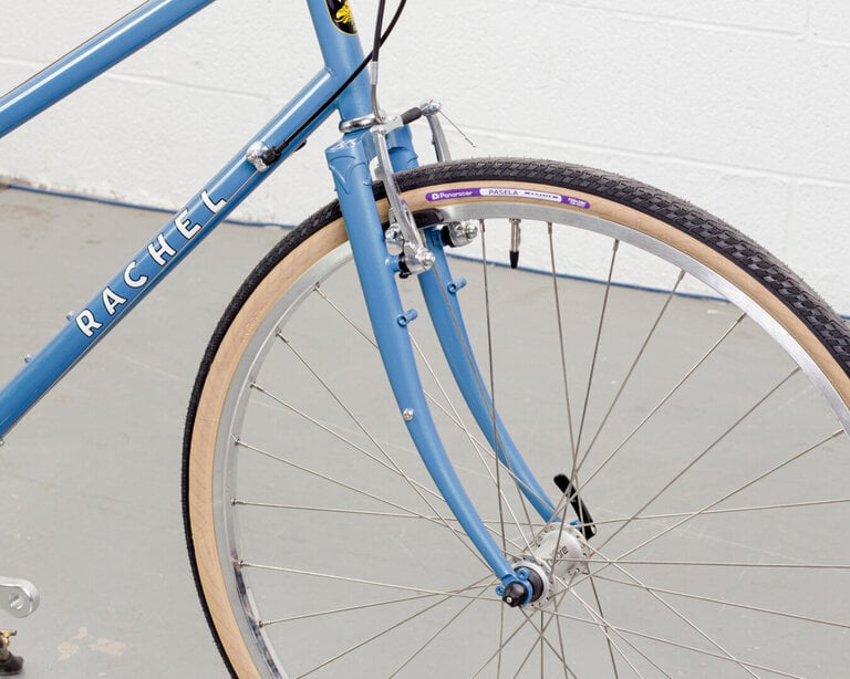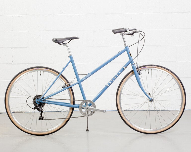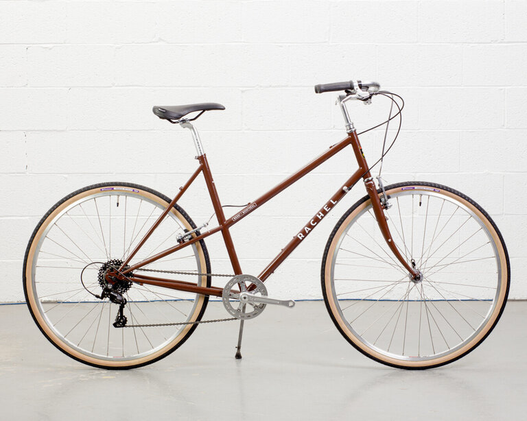 S'inscrireNotre cadre ouvert Rachel se refait une beauté! La nouvelle version est tout aussi versatile que la précédente, mais les quelques modifications que nous lui avons apportées lui procure un peu plus de stabilité et de confort. Des bases arrières plus longues, des oeillets pour deux portes-bidons et différents porte-bagages, des V-Brakes plutôt que des freins à tirage latéral de route, bref, tout pour en faire un « vélo de campagne » qui peut vous amener n'importe où.