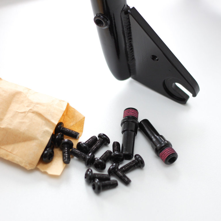 La fourche est remplie d'œillets pour pouvoir mettre vos bagages. Pratiquement tous les porte-bagages y feront.