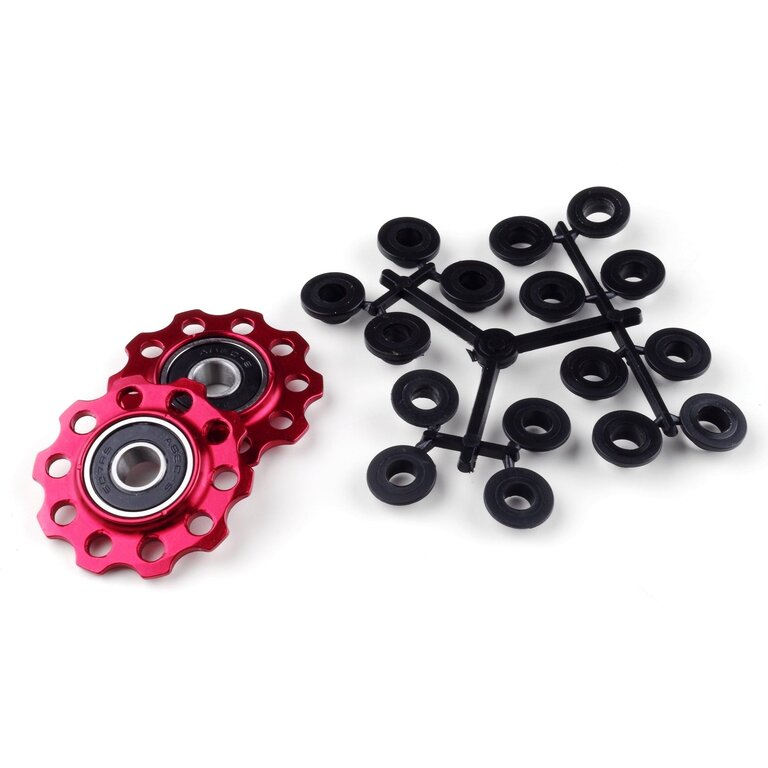 S'inscrireCes galets à 10 dents fabriqués d'aluminium machinés au CNC sont compatibles avec plusieurs dérailleurs vintages et modernes. Les roulements à billes scellés leur permettront de tourner en douceur sous toutes les pires conditions. L'ensemble inclu des douilles pour accommoder les vis droites de la plupart des dérailleurs.