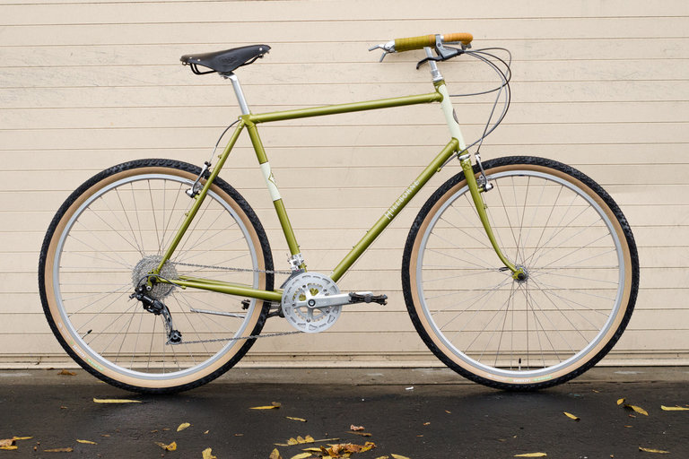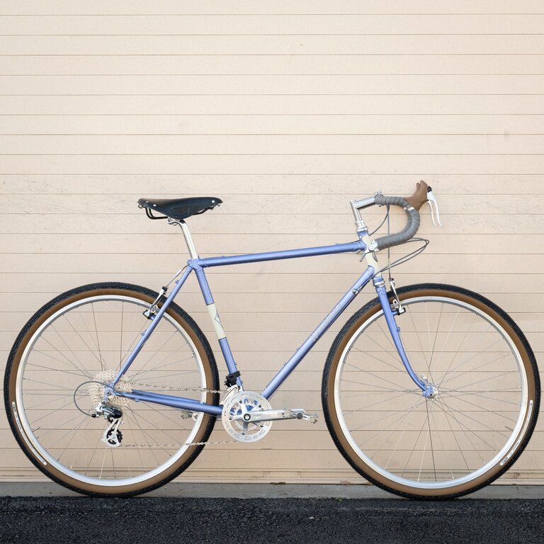 Le cadre: Tubes en CrMo SILVER, avec les dimensions que décident RBW. La géométrie est unique à eux aussi. Il roule comme tous les Rivendell, stable mais rapide. Bon avec guidon de route ou relevé. Prend des pneus jusqu'à 45mm avec garde-boues, ou 48 sans.