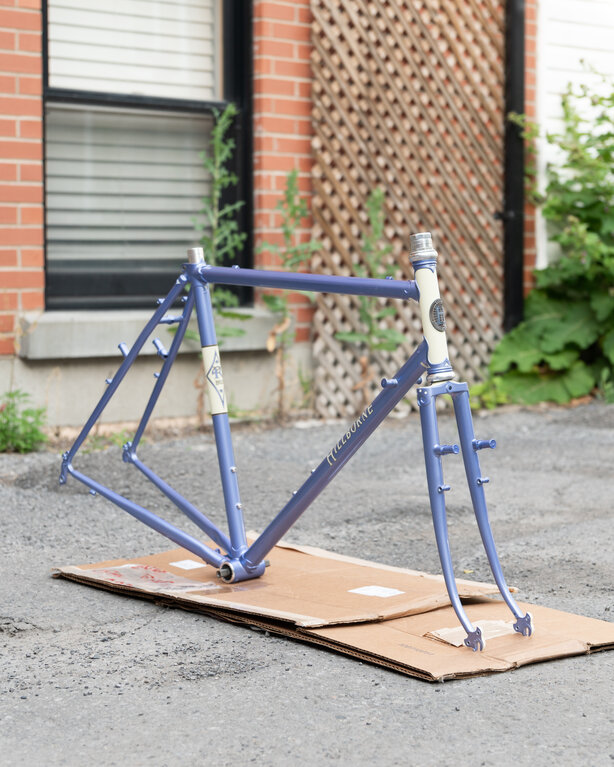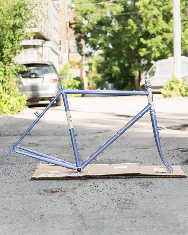 Capacité: Ça dépend de plein de facteurs, comme votre poids, l'état de la chaussée, le volume d'air et la pression des pneus, et comment vous roulez. Disons qu'un.e cycliste de 185lbs peut prendre 35-40lbs de bagages sur la route. C'est pas un cadre de tourisme mondial, mais il peut en prendre.