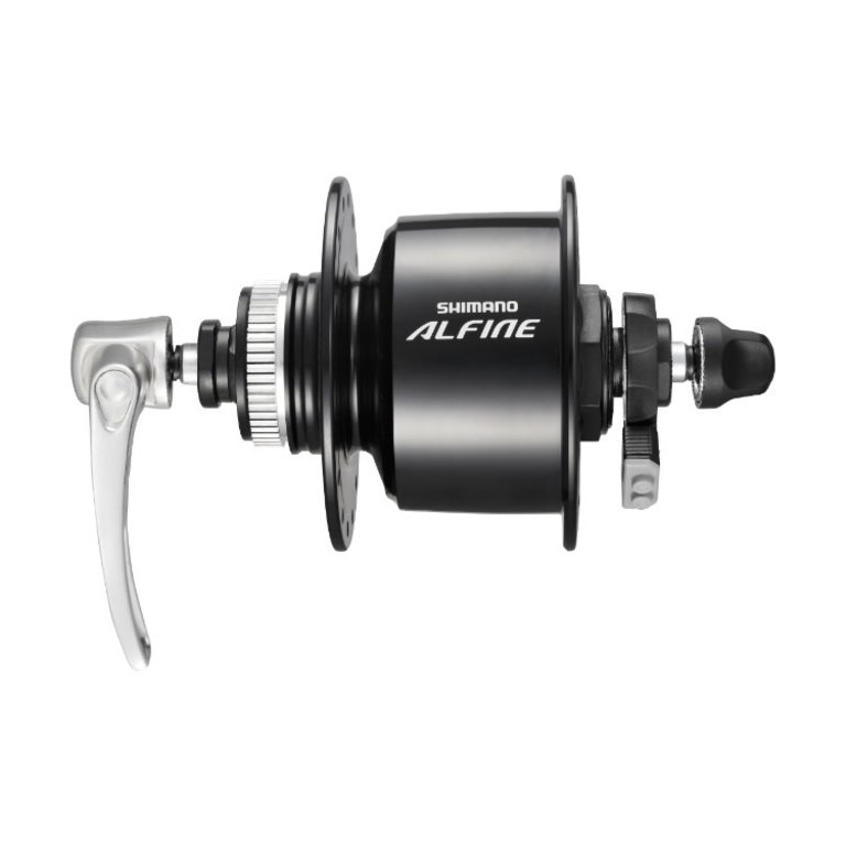 Le moyeu Alfine est le plus joli de Shimano et vous fournira des années de service fiable. Inclut le connecteur à fils et un cache-poussière pour l'attache à rotor, pour que vous puissiez vous en servir avec freins de jante aussi. Fournit 6V/3W (standard) et vous devriez vous en servir avec des roues entre 26po et 700C.