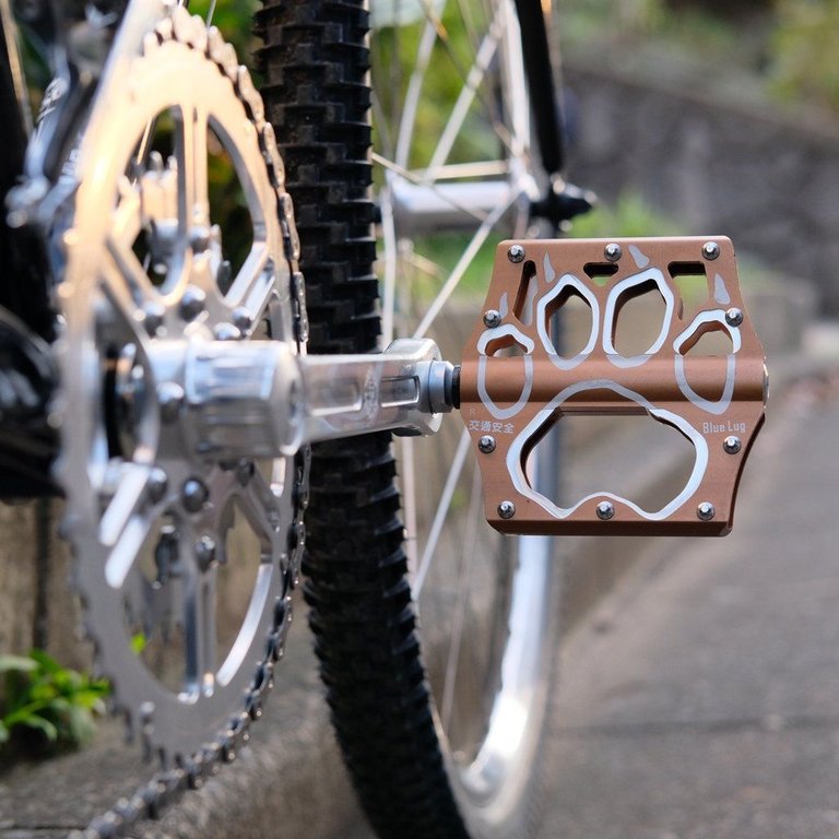 Le "交通安全" écrit sur les pédales veut dire « sécurité routière » en Japonais.