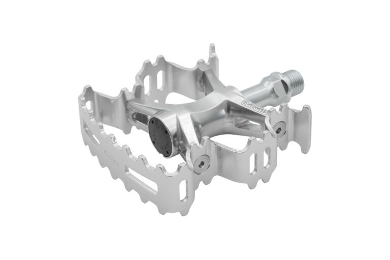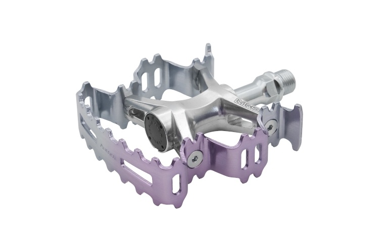 S'inscrireL'Aurora, avec sa plaque en alliage d'aluminium au design ondulé unique, formée par pliage à la presse, est la plus légère parmi les pédales MKS de taille comparable – 344 g par paire pour une plateforme de 92 x 95 mm.