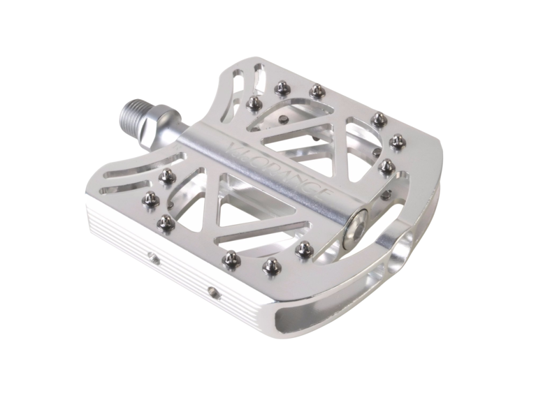 La plupart des pédales plates-formes existantes utilisent des roulements à billes libres, ou sont conçues pour le BMX ou la descente, et utilisent des coussinets durables, mais rigides. VO a conçu un axe tournant en chromoly qui utilise trois roulements scellés, deux intérieurs et un extérieur. Ça donne une pédale au roulement très doux; ça ressemble à une pédale de route haut de gamme et les roulements sont faciles à remplacer. Le poids est de 408 g par paire. Utilisez une clé hexagonale de 6 mm (clé Allen) ainsi que des plats (clé à pédale de 15 mm) pour une installation et un retrait faciles.