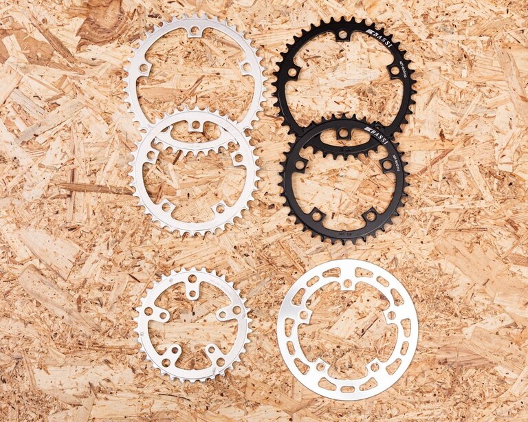 S'inscrireCe plateau à dents de largeur alternante vous permet d'avoir un seul plateau en avant, avec jusqu'à 11 pignons à l'arrière. Il est compatibles avec pédaliers de BCD 130mm (une taille commune en route double et piste non-compétitif), on en a faits quelques uns et il y en a plein dans le monde du cyclisme.