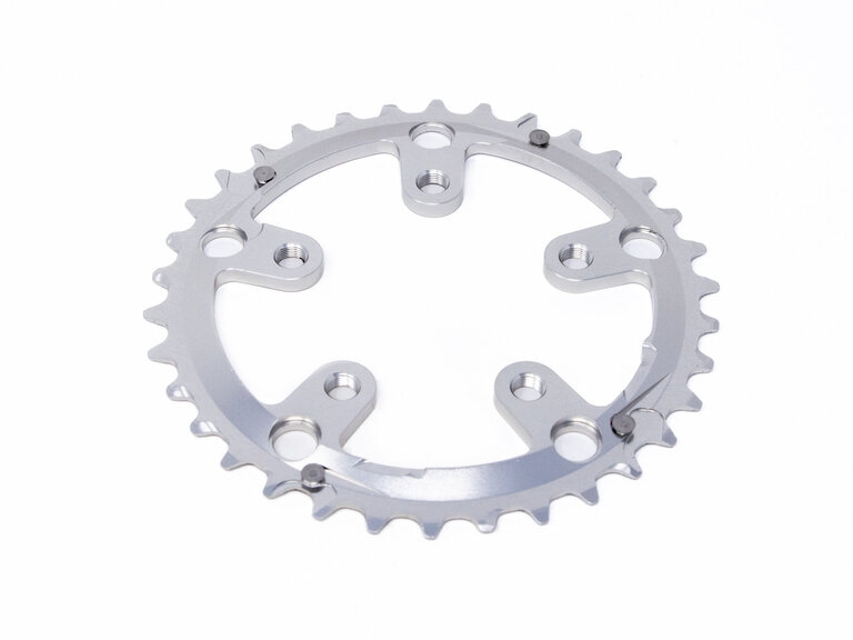 S'inscrireCe plateau est un remplacement exact pour le second plateau de notre pédalier Bassi Classique Triple. Le BCD des bras est 110mm, et le plus petit plateau s'installe sur celui-ci avec un cercle de vis 74mm.