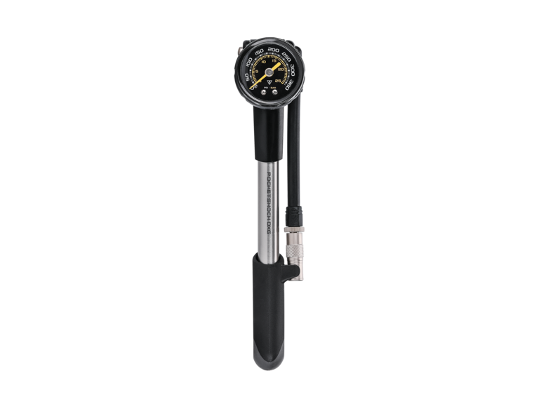 Une pompe à suspension avec une jauge bien lisible pour une pression précise jusqu'à 360 psi / 24.8 bar. Un boutton de purge et un connecteur Pressure-Rite facilite l'ajustement de la pression et élimine la perte d'air lorqu'on déconnecte, et le boyau flexible enlève du stress à la tige de la valve durant l'utilisation.