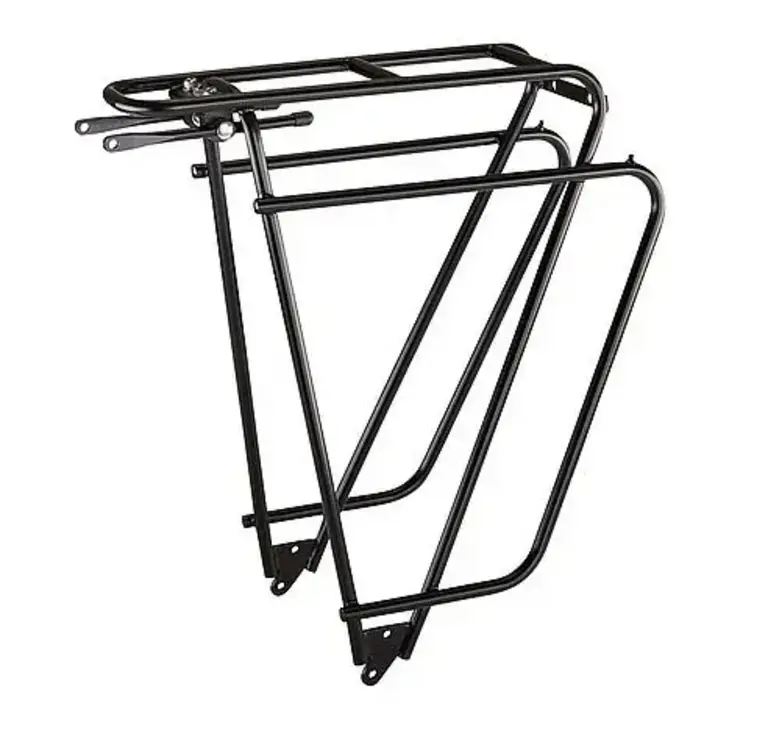 Fait pour le voyage: la plate-forme du haut est très étroite, mais a de l'espace pour une tente, un matelas, et un sac de couchage. Les sacoches sont installées un niveau plus bas. Ceci permet de baisser le centre de gravité et contribue à la stabilité du vélo. Combinés avec le Tara, les modèles Logo sont le rêve pour des voyages de grande envergure. Le Logo fonctionne aussi très bien sur les vélos avec des bases arrières très courtes.