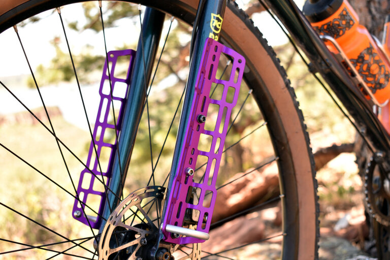 Fixez le CargoMount aux œillets trois-vis avec la configuration de trous allongés unique de Widefoot, qui permet un ajustement pour plusieurs positions sur cadres et fourches.