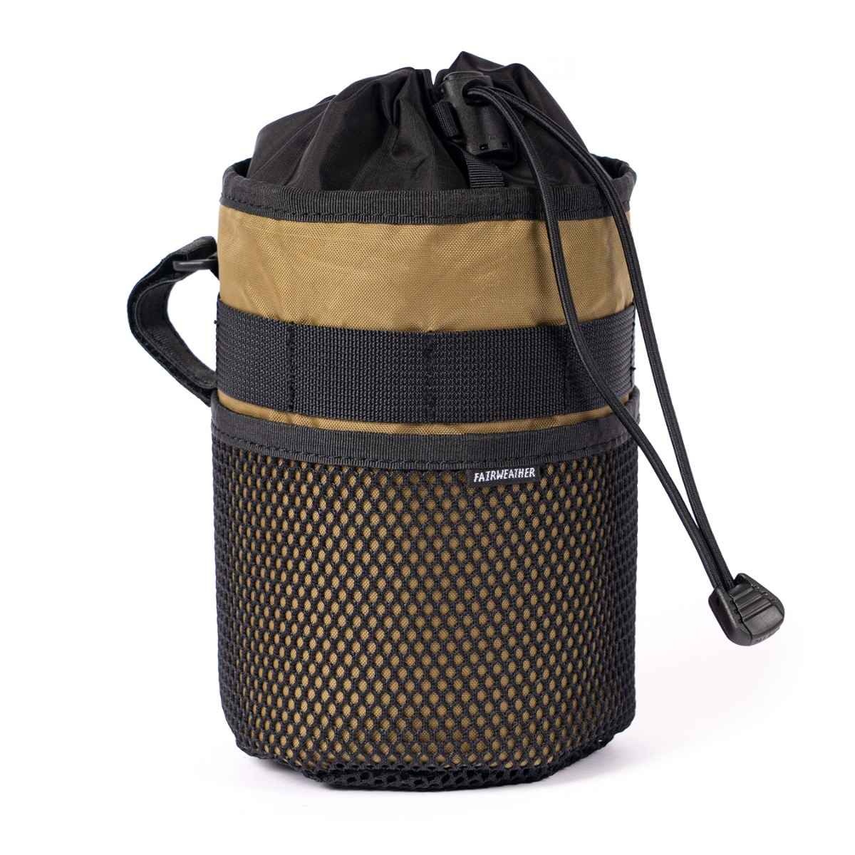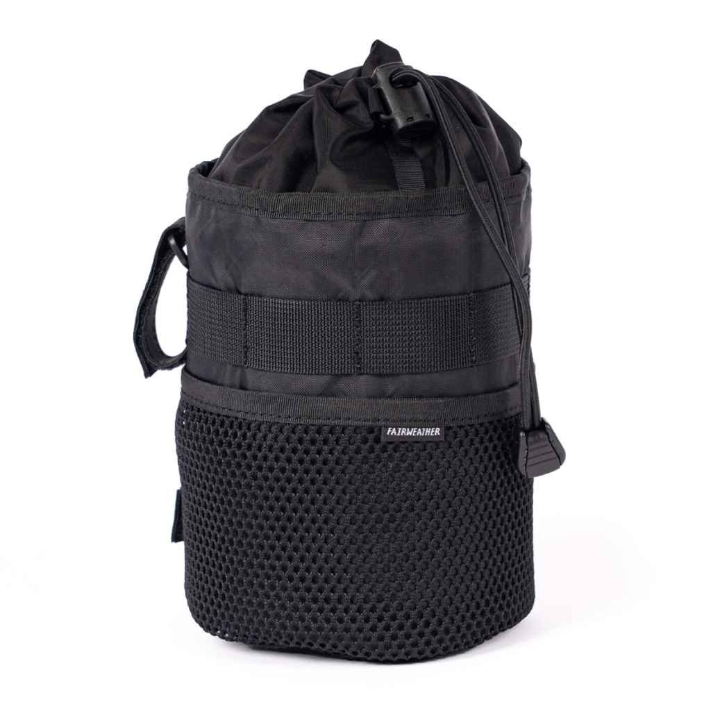 S'inscrireLe sac de potence Fairweather Plus est très grand, fait pour une bouteille d'eau Nalgene, avec des pochettes sur le côté pour des petits outils, collations, et comme endroit pour le décorer avec des macarons ou blasons. Avec différents points d'ancrage pour les trois sangles velcro fournies, le sac est adaptable à une variété de géométries de guidons et potences. L'ouverture avec le cordon est facile à utiliser pour accéder aux articles à l'intérieur. Le fond est en filet, donc l'eau ne s'accumule pas lorsqu'il pleut.