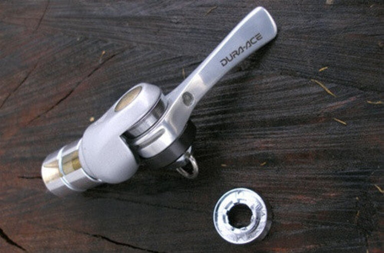 S'inscrireCette pièce est pour fixed les leviers Shimano indexés aux cadres Cannondale, puisque ceux-ci avaient des tubes surdimensionnés et donc ont fait faire des rondelles plates plutôt que courbées. Ça tombe bien que ça existe puisque c'est la même pièce pour installer les leviers Shimano aux trucs en bout-de-guidon Rivendell.