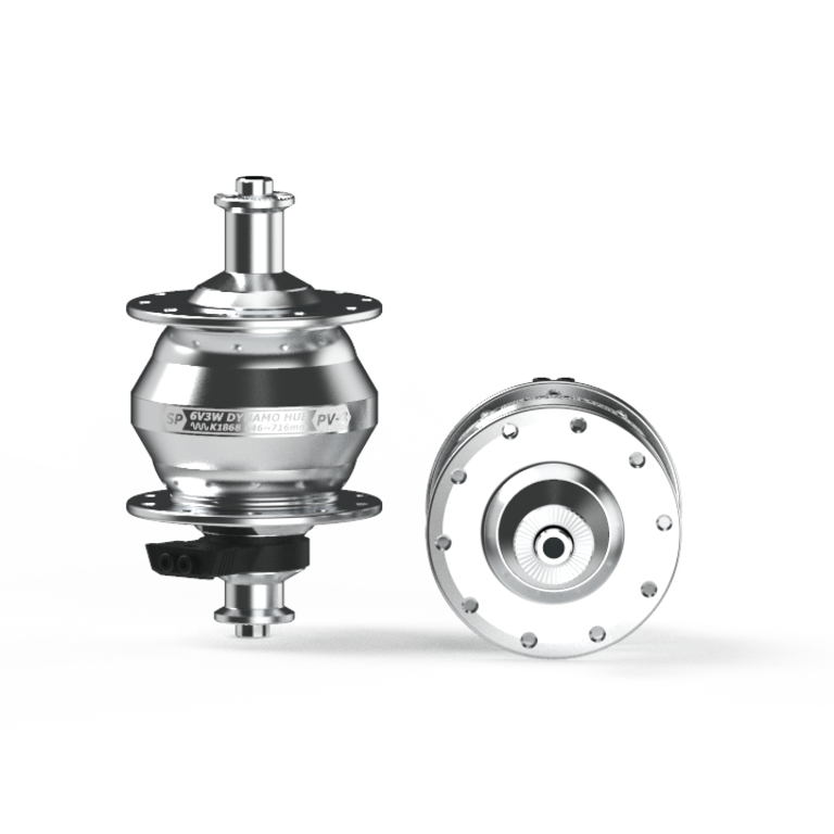 S'inscrireCeci est notre moyeu à dynamo standard. Il est à bon prix, solide, joli et marche à merveille. Ce modèle alimente avec 6V/3W sur des roues de 26po et plus grandes.