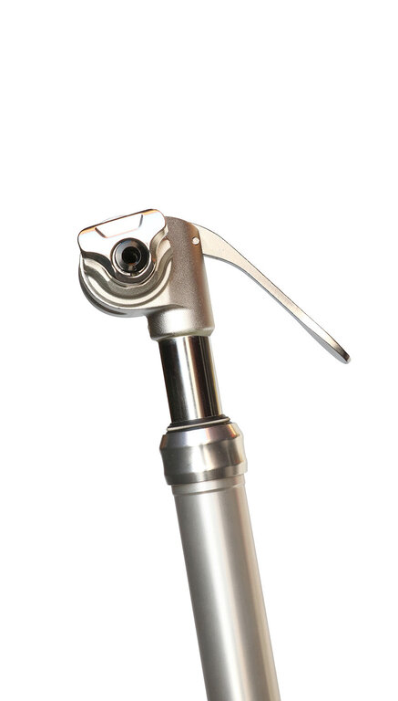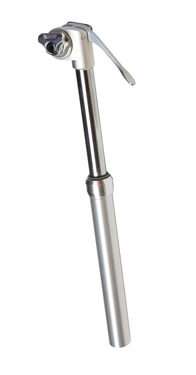 Dans un océan de tiges télescopiques noires, IRD a choisi de proposer ce modèle en argent afin qu'il s'harmonise mieux avec les vélos équipés de composants argentés.
